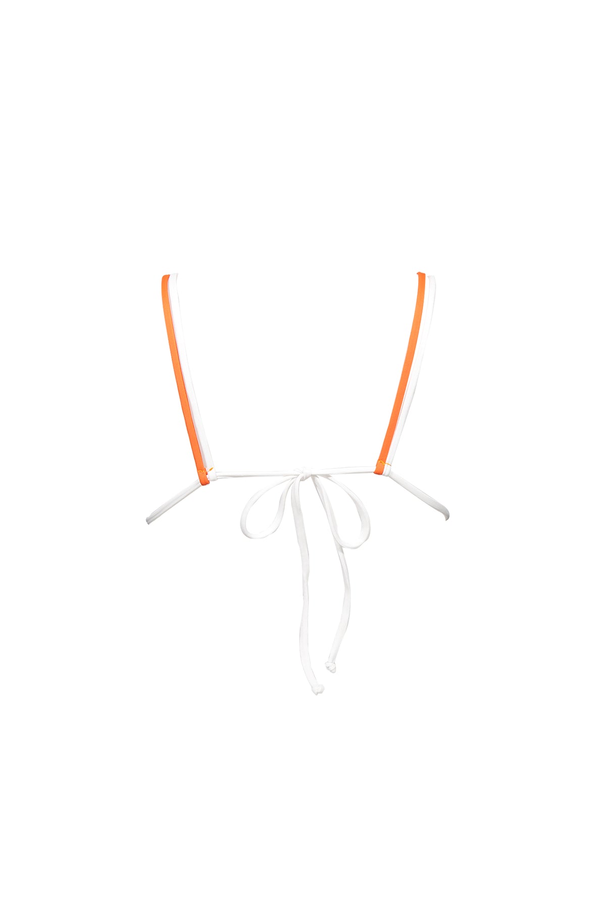 Top com corte triângulo e alças finas duplas, não ajustáveis. Medida de entrega com laço nas costas. Copa firme, conferida pelo entrelaçado da lycra. Não tem copas, nem aros. Ideal para peitos mais pequenos ou médios.