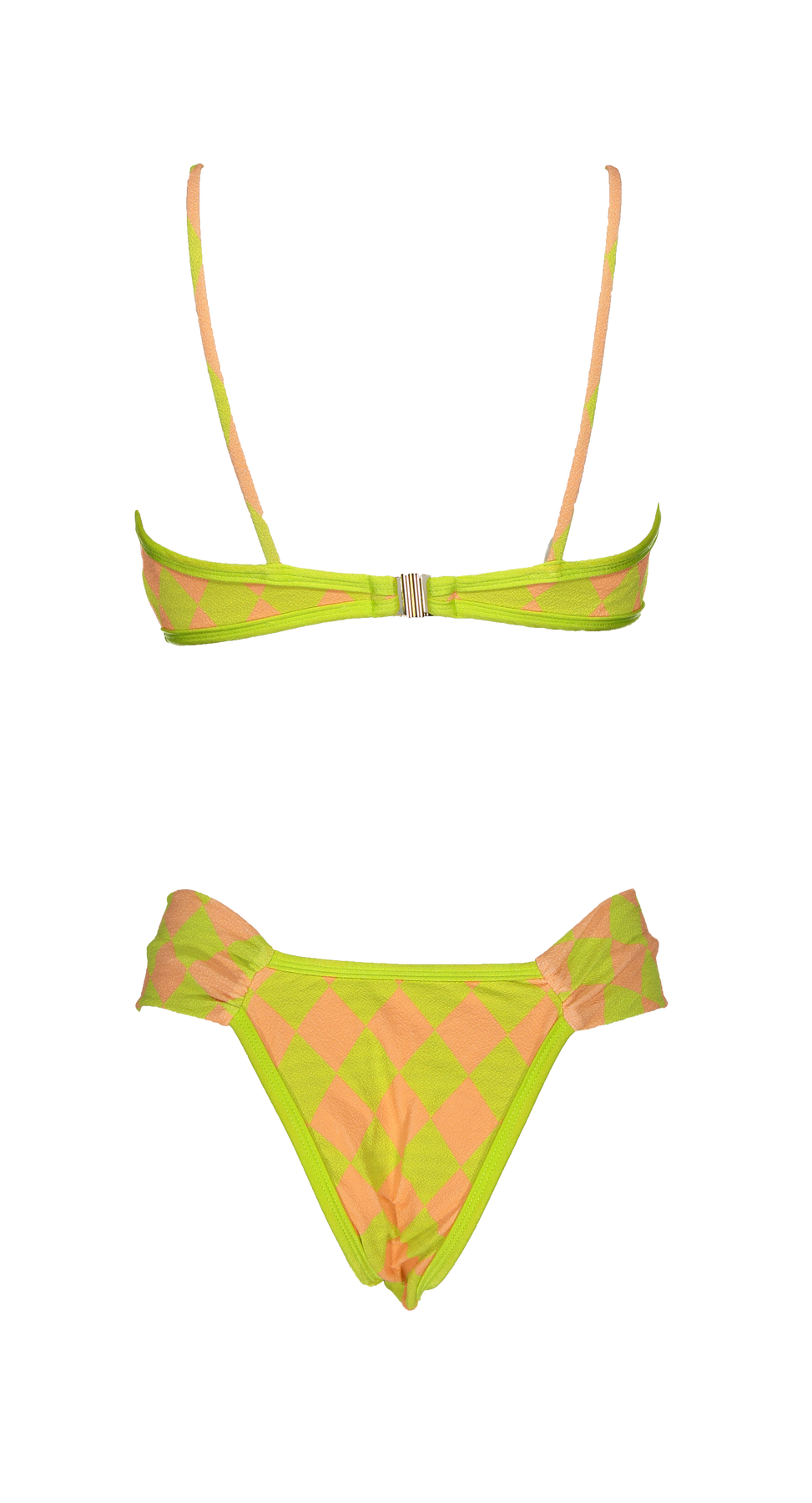 Top em formato balconette, com viés como rebordo à volta e fecho dourado atrás. Alças finas não ajustáveis. Com abertura para copas.