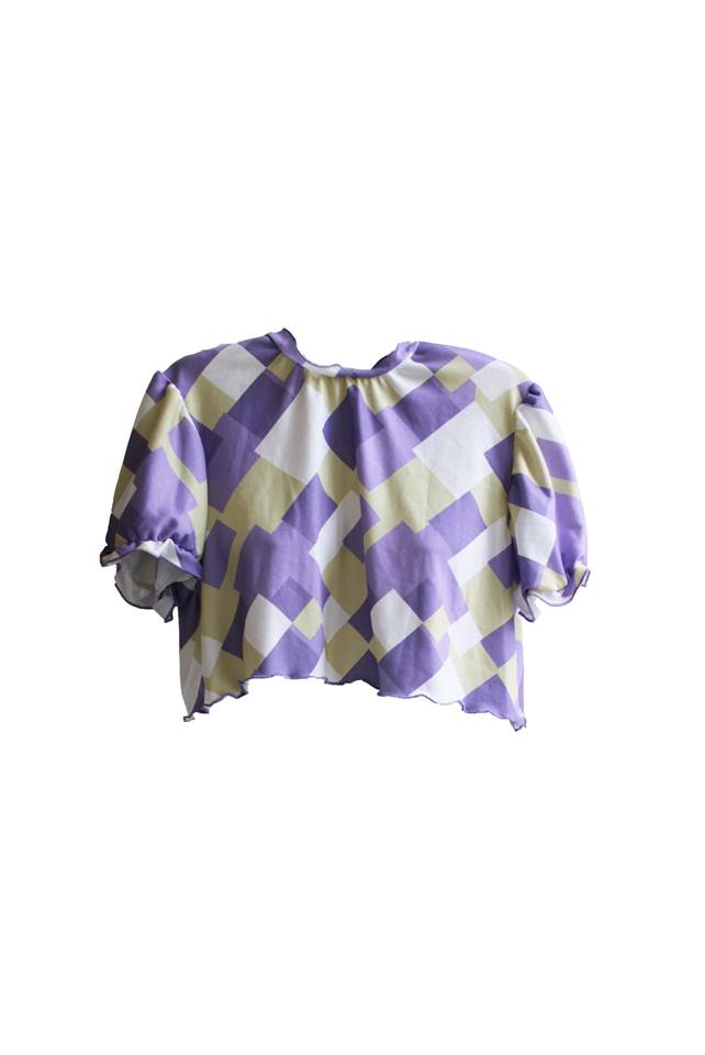 Top curto com mangas "balão". Tecido com elasticidade.