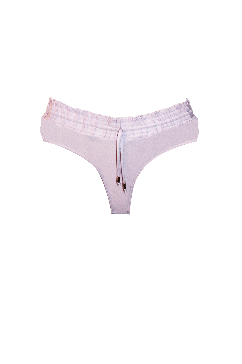 Top com decote em barco franzido a toda a volta. Não aperta e ajusta-se ao corpo pela flexibilidade do elástico. Parte de baixo mais cavada com pequeno franzido. Aperta de lado com lacinhos, pelo que é possível ajustar a sua medida.