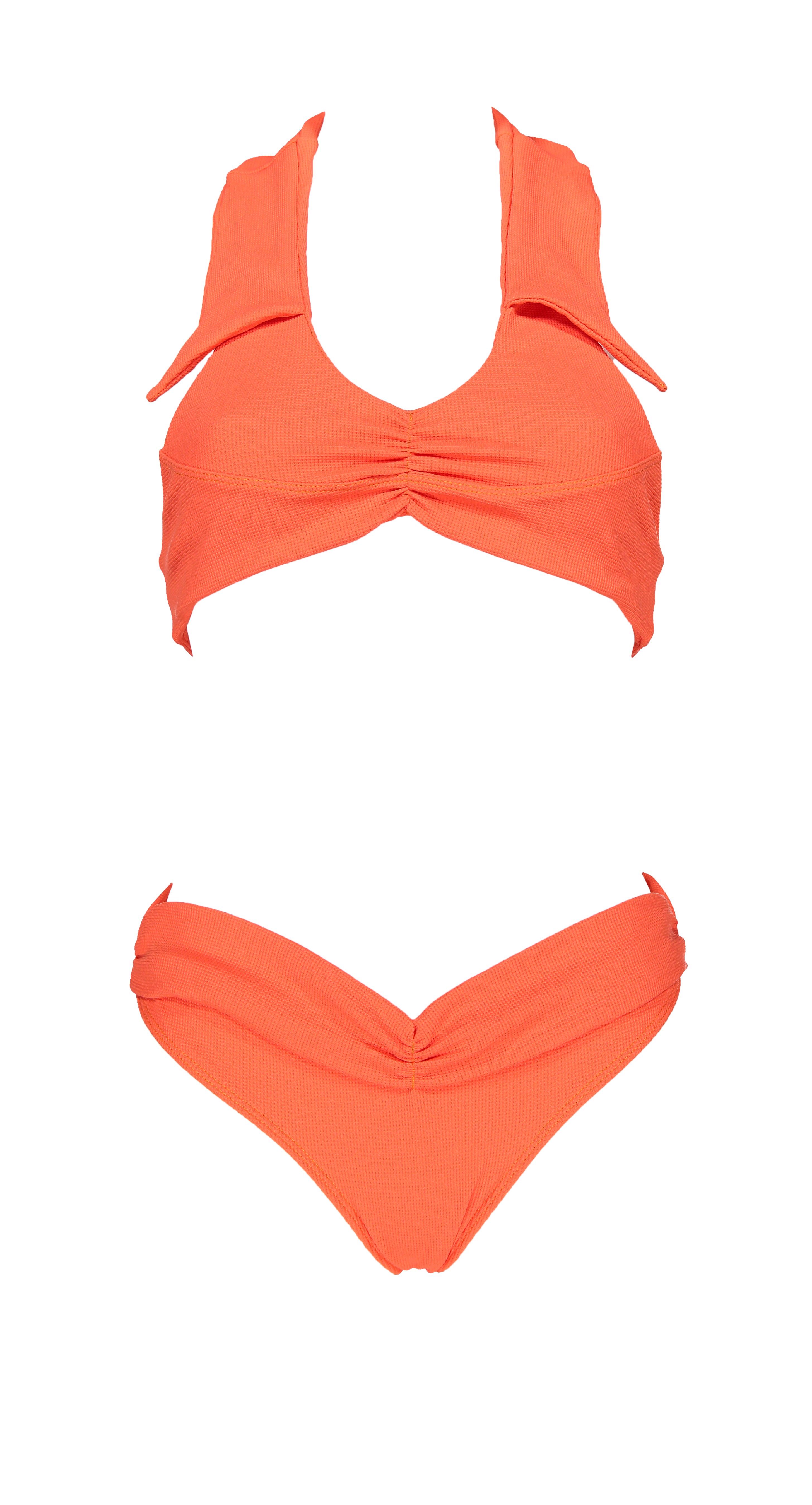 Low-cut briefs with ruffles and sides that sit at the waist. Non-adjustable.