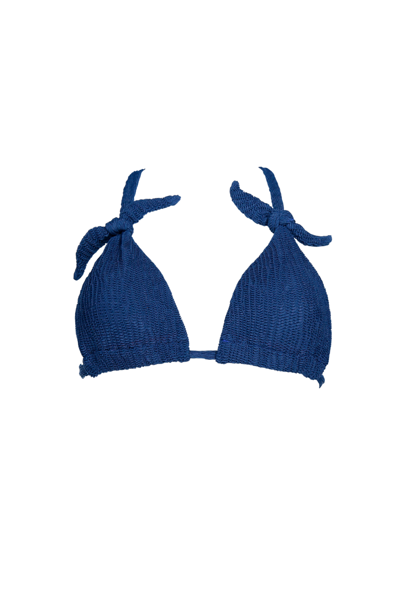 Top de biquíni com corte triângulo clássico, com lacinhos amovíveis que permitem personalizar o top. Aperta nas costas com laço e inclui alças ajustáveis na mesma fita, que podem ser colocadas a direito ou cruzadas. Sem aros e com abertura para copas amovíveis.